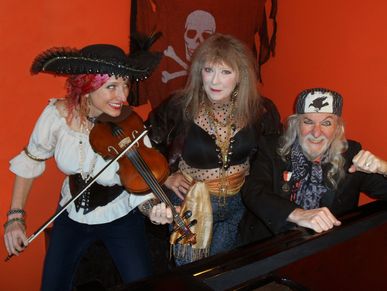 Pirates by day, cabaret performers by night – Black Bra Pirate Cabaret is the latest incarnation of the family trio of singer Jayne Muirhead, her husband and music director John Engerman, and his daughter and violinist Ruby Grynberg. Led by the infamous Captainess Black Bra, they loot and pillage the slimiest haunts of the Salish Sea to bring you silly, musically infectious songs and stories.
